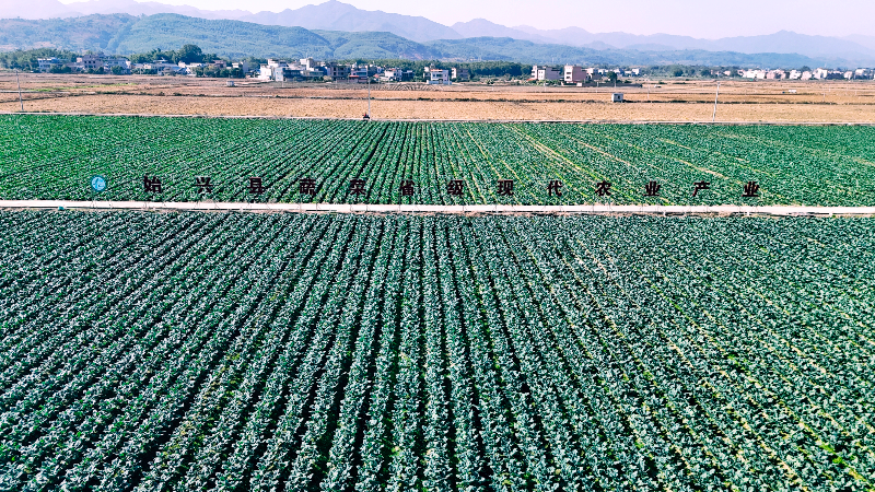 美青農業的蔬菜基地里,田壟整齊如織,滿眼綠意盎然。從高空俯瞰,基地宛如一塊巨大的拼圖,不同種類的蔬菜田塊有序排列,勾勒出規則的線條。雖已入冬,基地卻一派忙碌:蠶豆地里,數十名工人彎腰清苗除草;西蘭花田塊,新栽的菜苗正扎根生長;而兩個月前種下的豆苗、高腳菜心,已郁郁蔥蔥,進入豐產采收期。