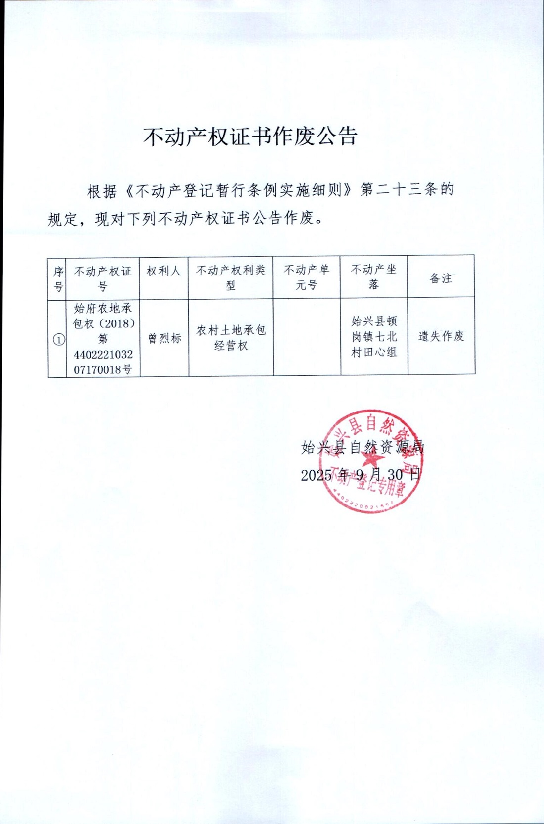 不動(dòng)產(chǎn)權(quán)證書(shū)作廢公告