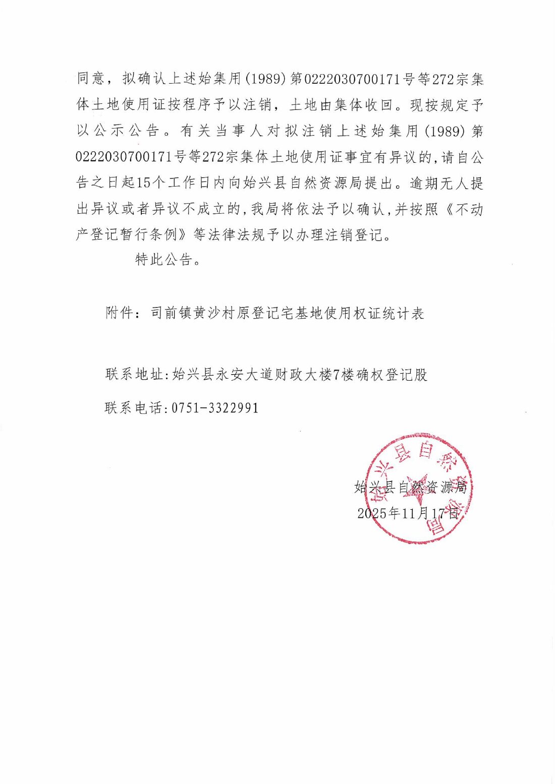 司前鎮(zhèn)黃沙村原登記宅基地使用權證統(tǒng)計表.pdf