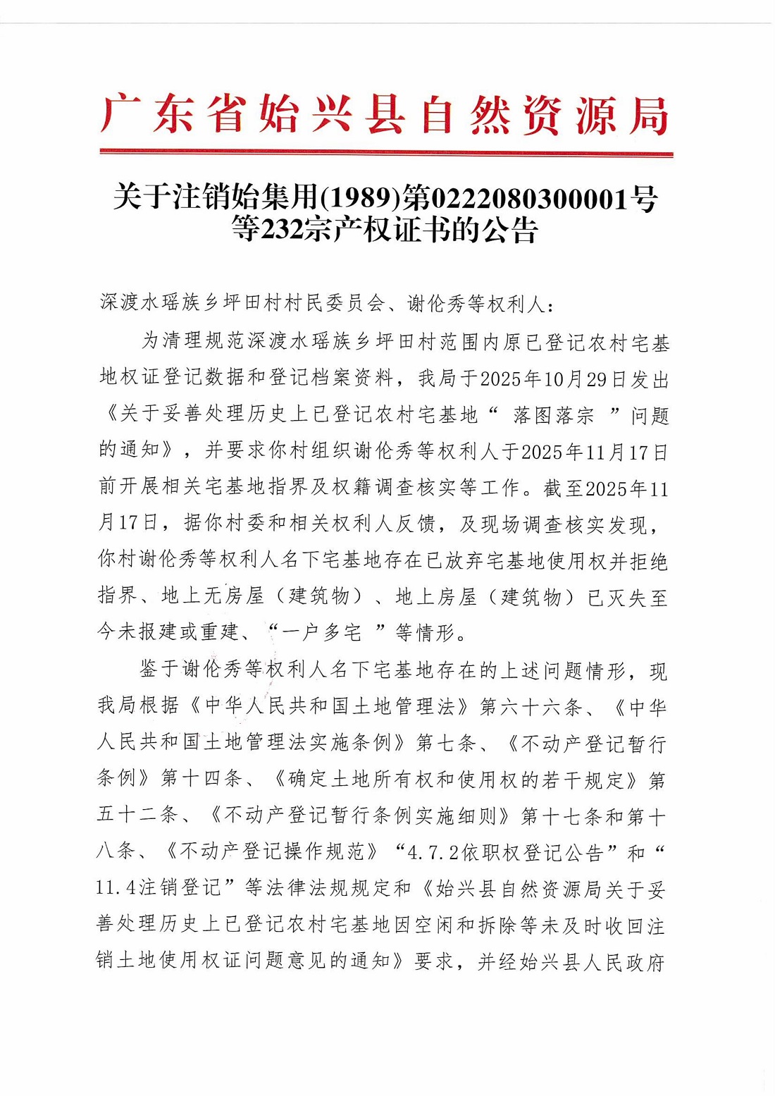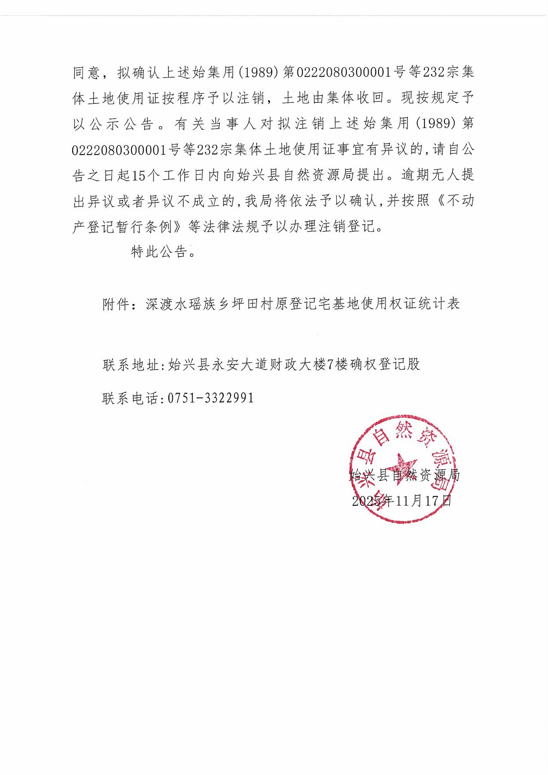 深渡水瑤族鄉坪田村原登記宅基地使用權證統計表.pdf