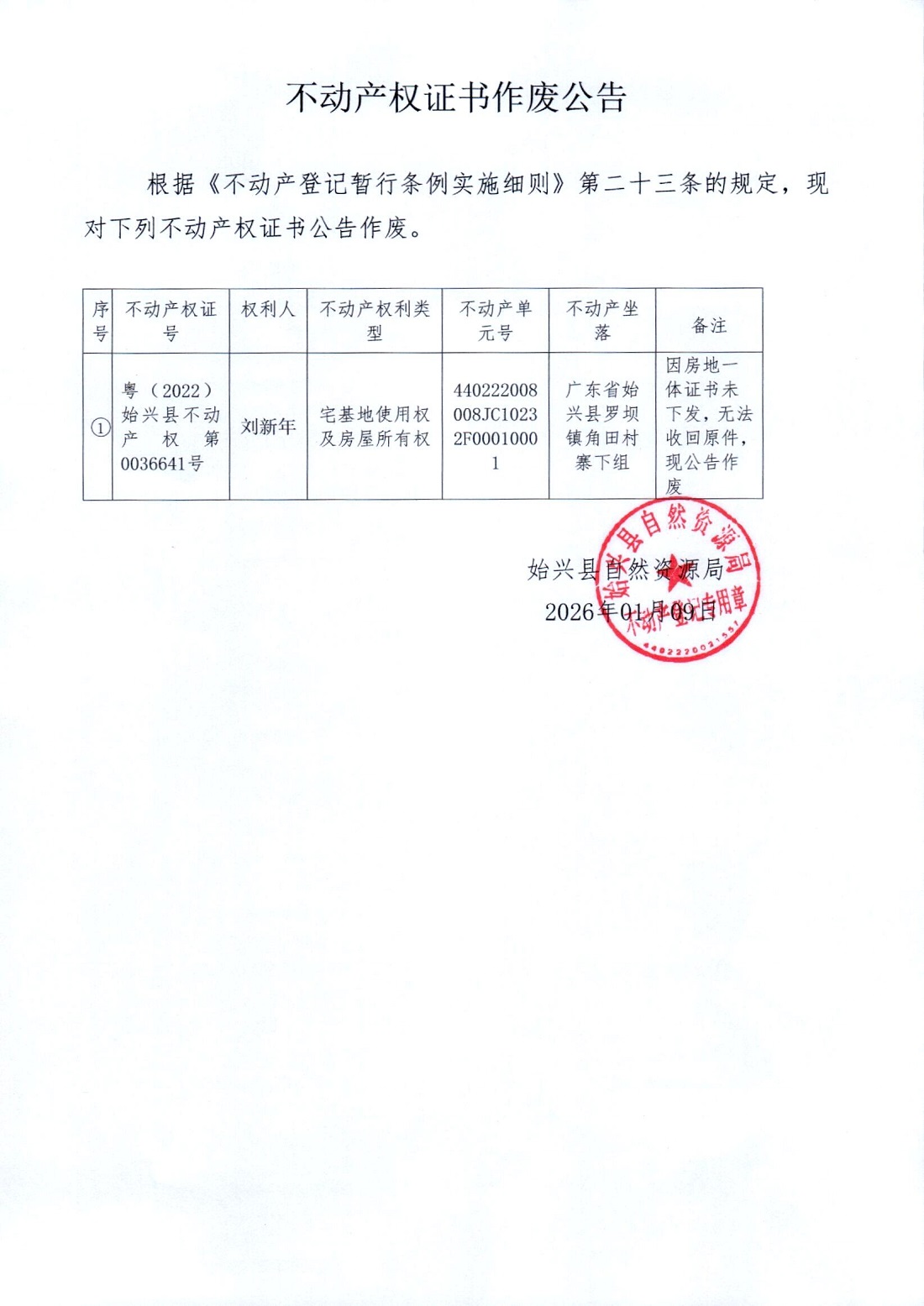 不動(dòng)產(chǎn)權(quán)證書(shū)作廢公告